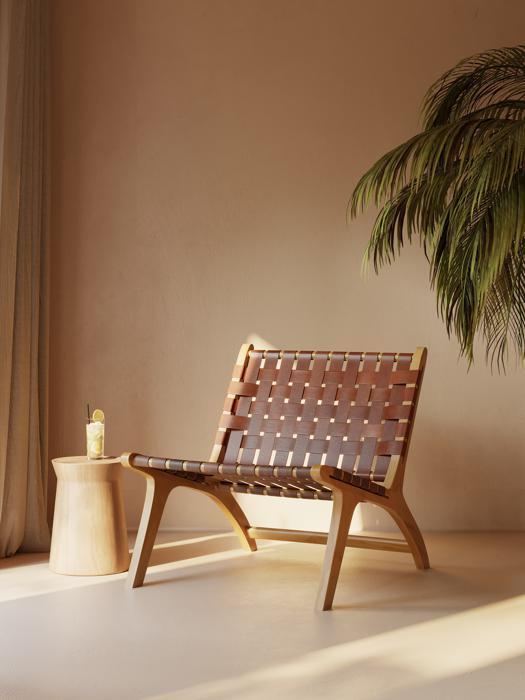Ein Holzstuhl mit Lederbezug ist ein schönes und funktionales Möbelstück, das natürliche Materialien mit einem Hauch von Luxus verbindet. Der Stuhl verfügt über einen robusten und langlebigen Holzrahmen aus hochwertigem Hartholz, der eine solide Grundlage für Sitz und Rückenlehne bietet. Der Sitz und die Rückenlehne des Stuhls bestehen aus einem engen Gewebe aus Lederstreifen, wodurch eine einzigartige und auffällige Textur entsteht, die den Gesamteindruck des Stuhls verstärkt. Der Stuhl hat ein einfaches und elegantes Design mit klaren Linien und einer minimalistischen Ästhetik, die sich leicht in eine Vielzahl von Einrichtungsstilen integrieren lässt. Die Beine des Stuhls sind aus Stabilitätsgründen leicht nach außen geneigt. Die Unterseite der Beine kann mit Schutzkappen versehen werden, um Kratzer oder Schäden an Ihren Böden zu vermeiden. Insgesamt ist ein Holzstuhl mit Lederbezug ein vielseitiges und stilvolles Möbelstück, das jedem Raum Wärme, Textur und visuelles Interesse verleiht. Seine Kombination aus natürlichen Materialien und luxuriösen Details macht es zu einer beliebten Wahl für alle, die ihrem Zuhause einen Hauch von Raffinesse und Eleganz verleihen möchten.