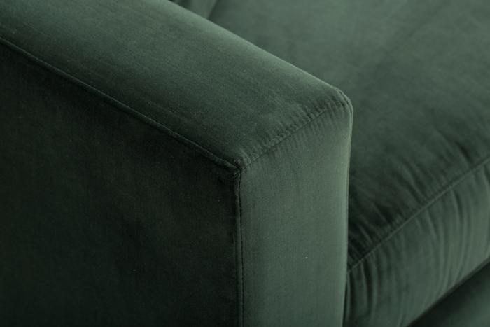 Das traditionelle Dreisitzer-Sofa ist ein klassisches und elegantes Möbelstück, das jedem Wohnzimmer oder Sitzbereich einen Hauch von Raffinesse verleiht. Das Sofa ist mit einem robusten Holzrahmen konzipiert, der auf Langlebigkeit und Stabilität ausgelegt ist und sicherstellt, dass das Sofa einer regelmäßigen Nutzung im Laufe der Zeit standhält. Das Sofa ist mit einem smaragdfarbenem Stoff bezogen - ein wahrer Hingucker in jedem Raum. Der Stoff fühlt sich weich und angenehm an, sodass dem stilvollen Entspannen nichts mehr im Wege steht. Das Sofa ist mit zwei großen Kissen ausgestattet, die mit hochwertigem Schaumstoffmaterial gefüllt sind und bei längerem Sitzen hervorragenden Halt und Komfort bieten. Die Rückenlehne und die Armlehnen des Sofas sind mit einem weichen und plüschigen Material gefüllt, sodass Sie nach einem langen Tag in das Sofa sinken und sich entspannen können. Das traditionelle Dreisitzer-Sofa ist ein vielseitiges Möbelstück, das eine Reihe von Einrichtungsstilen ergänzen kann, von klassisch und traditionell bis hin zu modern. Es kann mit einer Vielzahl von dekorativen Akzenten wie Kissen, Überwürfen und Teppichen kombiniert werden, um einen zusammenhängenden und stilvollen Wohnraum zu schaffen. Das traditionelle Dreisitzer-Sofa aus smaragdgrünem Stoff ist ein zeitloses und elegantes Möbelstück, das jedem Wohnzimmer oder Sitzbereich sowohl Komfort als auch Stil verleiht. Sein klassisches Design, die hochwertigen Materialien und seine Funktionalität machen es zu einer funktionalen und stilvollen Wahl für jedes Zuhause.