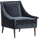 A velvet chair with ebony legs is an elegant and luxurious piece of furniture. The soft, plush velvet material of the chair provides a comfortable and cozy seating experience. The dark blue color of the velvet fabric is soft and delicate, adding a touch of modernity to the overall look of the chair. The ebony legs of the chair are sturdy and durable, providing a solid foundation for the seating area. The ebony color of the frame adds a touch of sophistication to the overall look of the chair. The combination of the velvet and ebony creates a striking contrast, making this chair a statement piece in any room. The chair features a high backrest with a curved design, providing support for the back and shoulders. The armrests are also curved, providing a comfortable place to rest the arms. The chair is designed for both style and comfort, making it a great addition to any living room, bedroom, or office space.